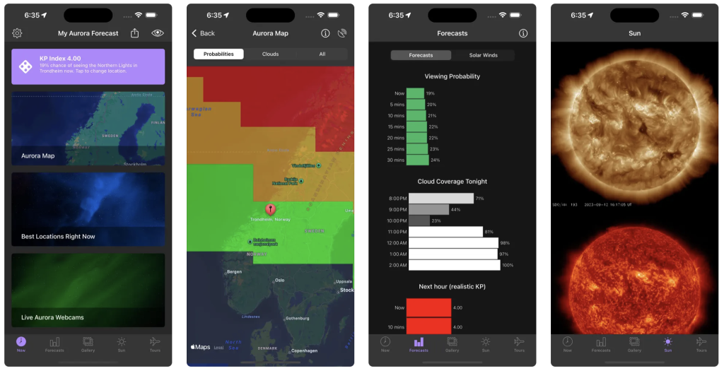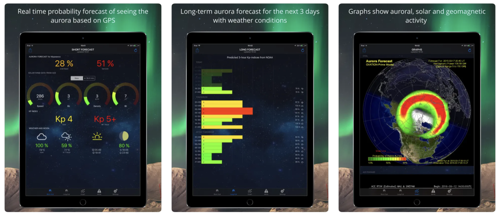 This App helped us to visually see on a Map where the Aurora is, that’s pretty much all we used it for. We didn’t have much success with the Forecasts and other parts of the app.