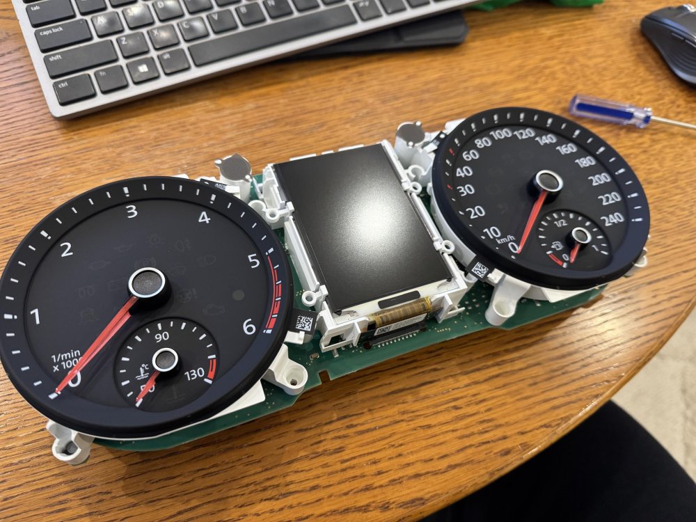 The next modification was to upgrade the analog instrument cluster into a digital one. This process was fairly straight forward and required the removal of the internal control unit and transfer it across into the digital one. This ensured that none of the key VW data was lost, mileage remained the same and all functionality worked.