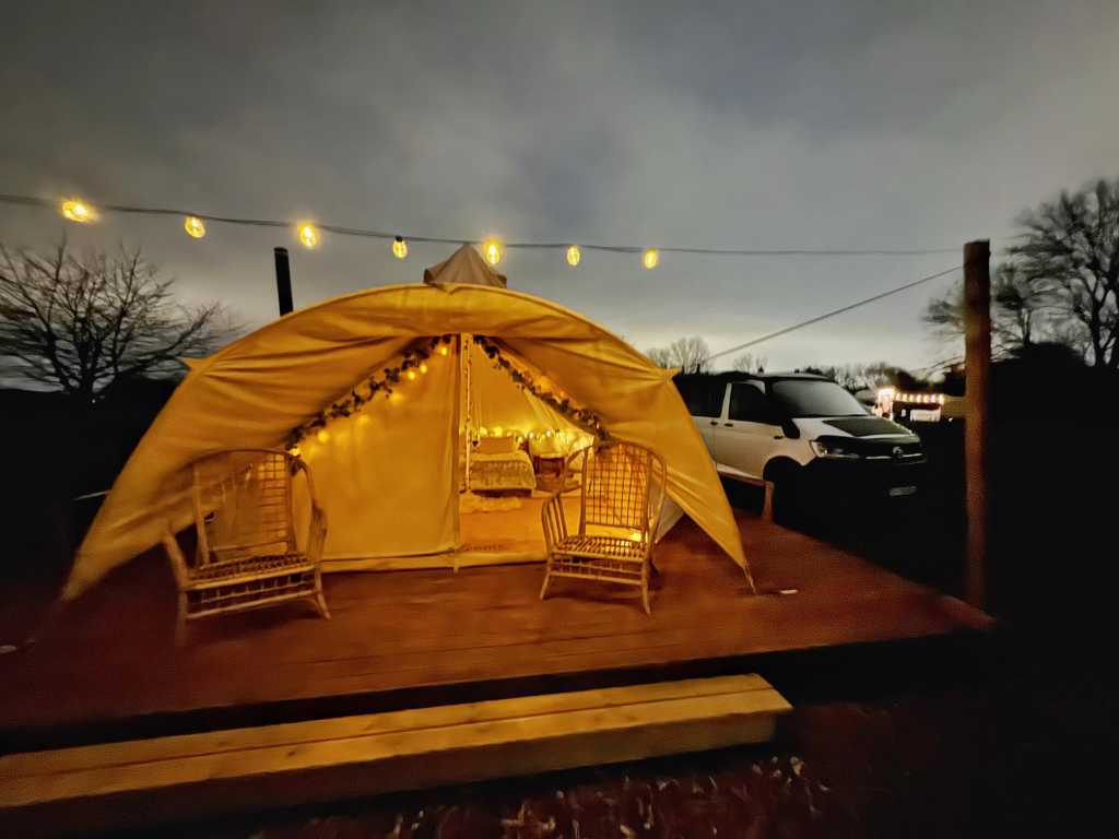 Steve helped me install the kitchen unit, fridge, sink. We stayed at their beautiful Glamping site and helped a bit around the farm.