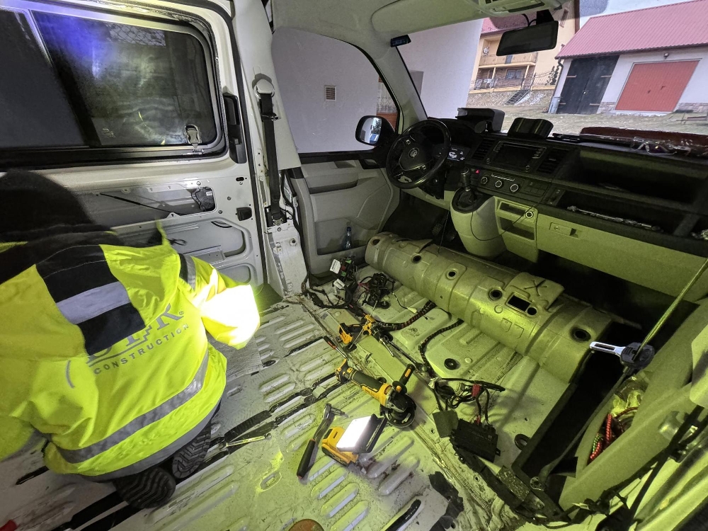 Once we completed the electric side, it’s now time to start with the main structural work. We began by removing the factory-installed bulkhead which made it into a delivery van called ‘Furgon’.