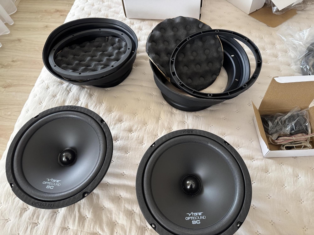 Now that the van has been quietened, I wanted better sound quality. The Starline has the worst audio system.. On the THQ website, new 8″ Vibe Audio speakers were found. They are fantastic, no amplifier needed. They do lack a bit of bass but this will be solved later on with an underseat integrated subwoofer.