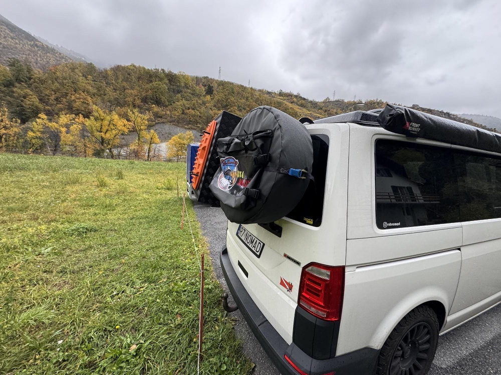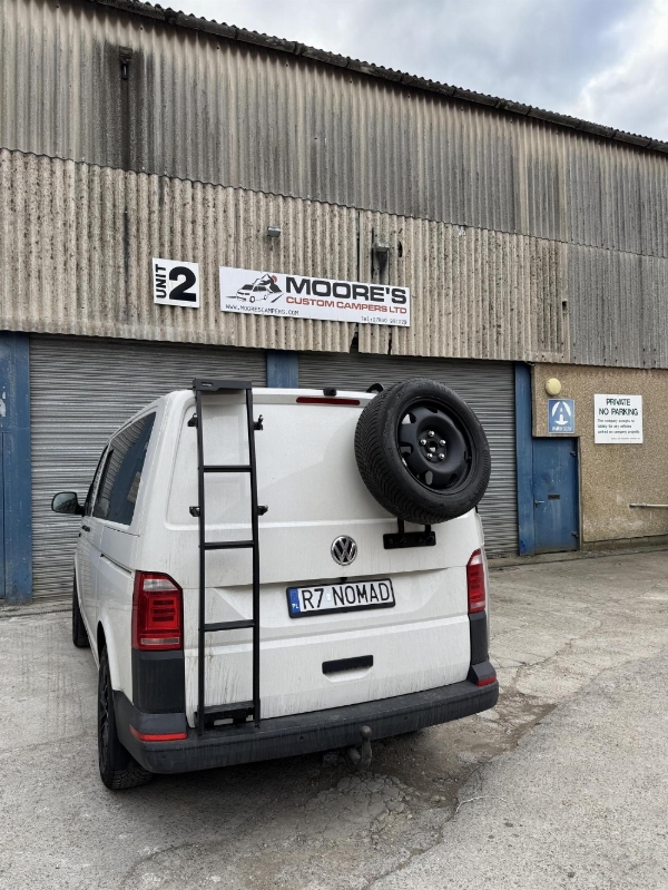 To make space for an underbody water tank, this meant that the spare wheel needs to be moved the back of the van. The decision whether to mount a permanent wheel carrier vs a bicycle rack with an adaption for a wheel took a lot of thinking through. In the end we decided that the van is purpose built for adventure so why fit a temporary mount. We ended up buying an UB components wheel carrier, its sturdy and well built. Again this was a bit of a stressful modification as it meant that holes needed to be drilled in the tailgate, a one way ticket if you may. Also part of the order we opted to purchase the more expensive Heavy Duty struts kit from UB, also a well engineered bit of kit. More about this later.