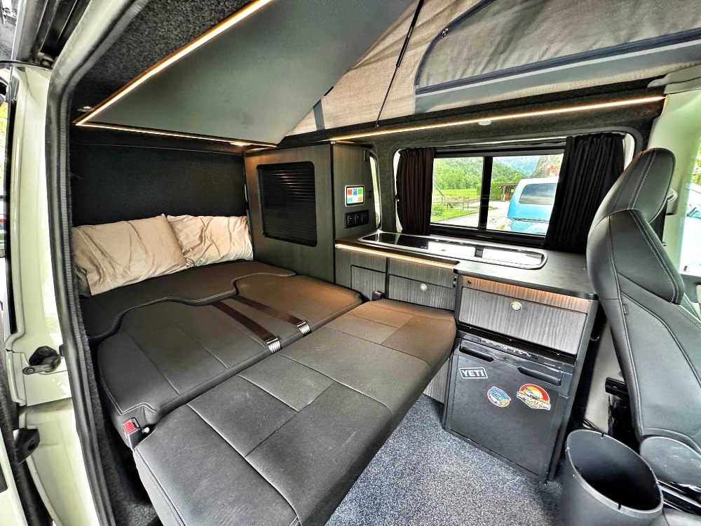 We chose Smart Beds and their rail based Rock n Roll bed system. The bed is TÜV approved and crash tested, which meant it fully met our compliance requirements while also giving flexibility in layout.