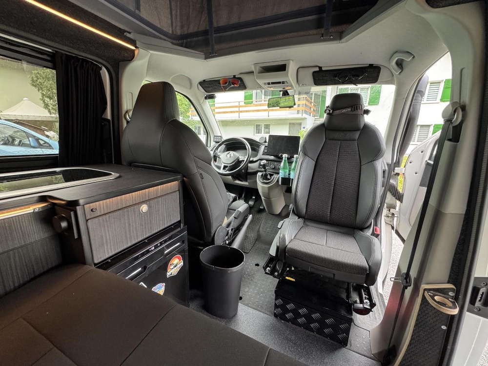 Once we made space in the cabin, we wanted to fit a Swivel base seat and of course some nice sporty looking Audi seats. In hindsight, this was probably not the best idea as the bucket seats are not comfortable over long distances. We find ourselves tired and stiff after a couple of hours on the road. Either way, I think they look great! It was a bit of a struggle to adapt the Audi seats to the VW but with the help of some adapter plates, the drivers seat fits perfectly. The swivel base was already configured to hold all VAG seats.