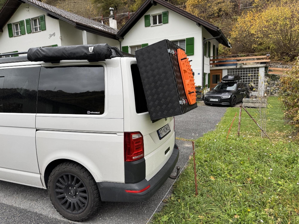After using the van for a while, it became obvious that we had a lot of camping gear floating around inside. At the same time, the rear ladder turned out to be a pretty pointless addition, so it made sense to rethink that whole setup.