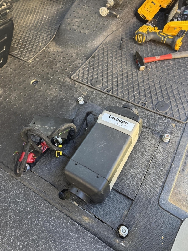 Got some work done on the van, starting with installing the Webasto ST 2000 heater under the passenger seat. The next step is to prime the fuel system and make sure everything is running properly. Once it is up and running, I will grab a few photos before refitting the underbody covers.