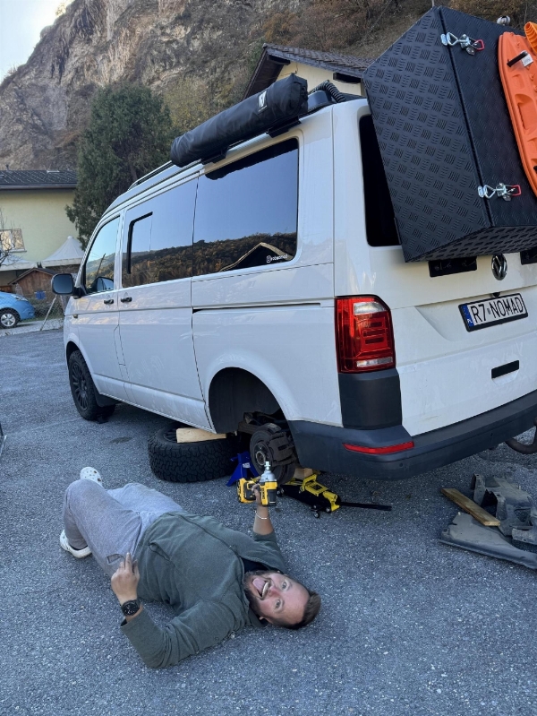 While I was at it, I also noticed the rear of the van had started to sag under the extra weight of the conversion. The standard suspension was clearly struggling, so I replaced the rear springs and shocks first. That has made a big difference and the van now sits level again. The front shocks will be next on the list.